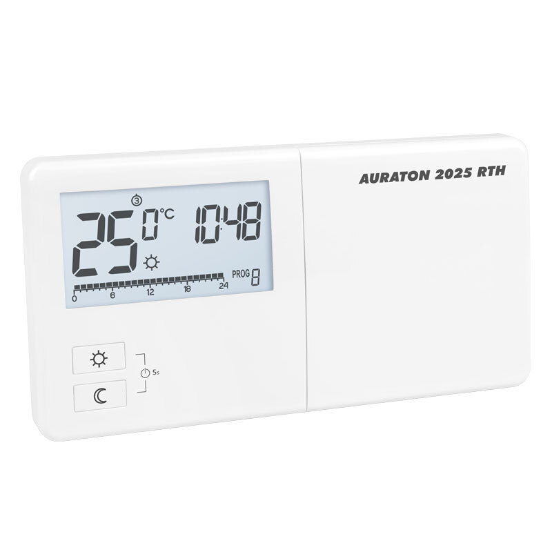 Проводной регулятор температуры Auraton 2025 позволяет управлять отопительным оборудованием для комфортного поддержания заданной температуры в помещении. Имеет возможность установить комфортную и пониженную температуру, температуру предотвращения замерзания, выбрать одну из 7-и предустановленных программ либо настроить программу работы самостоятельно. Также регулятор температуры Auraton 2025 позволяет настроить режим «Отпуск» на период 1-99 дней.